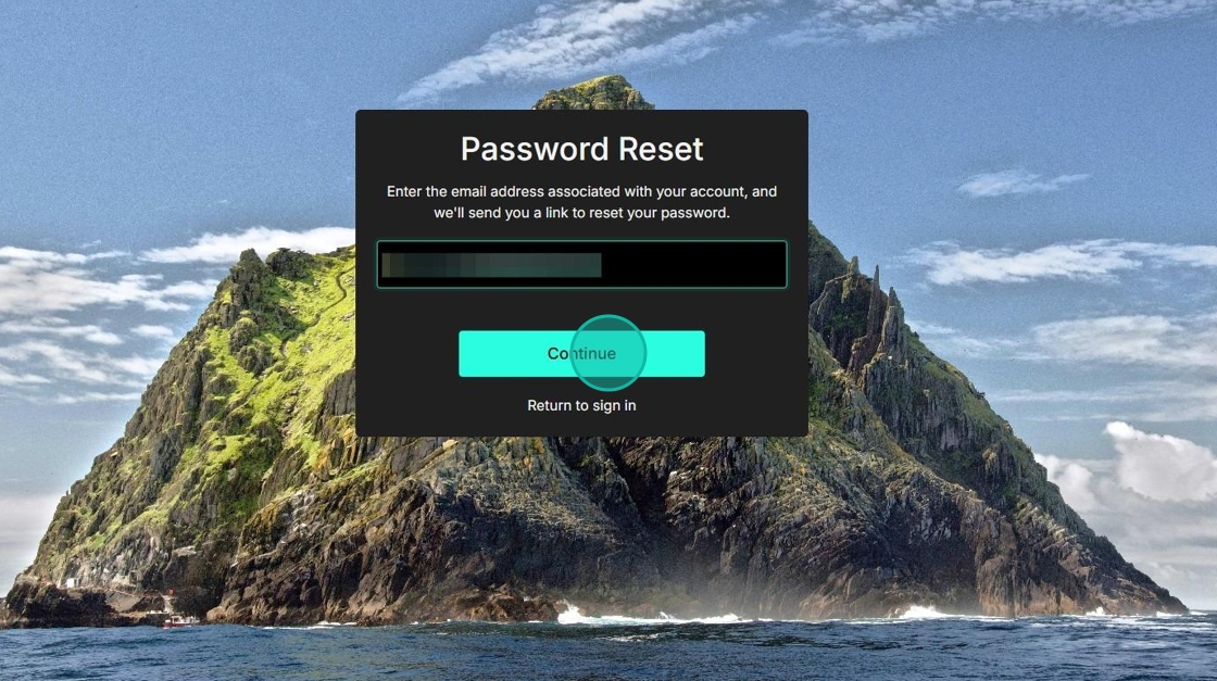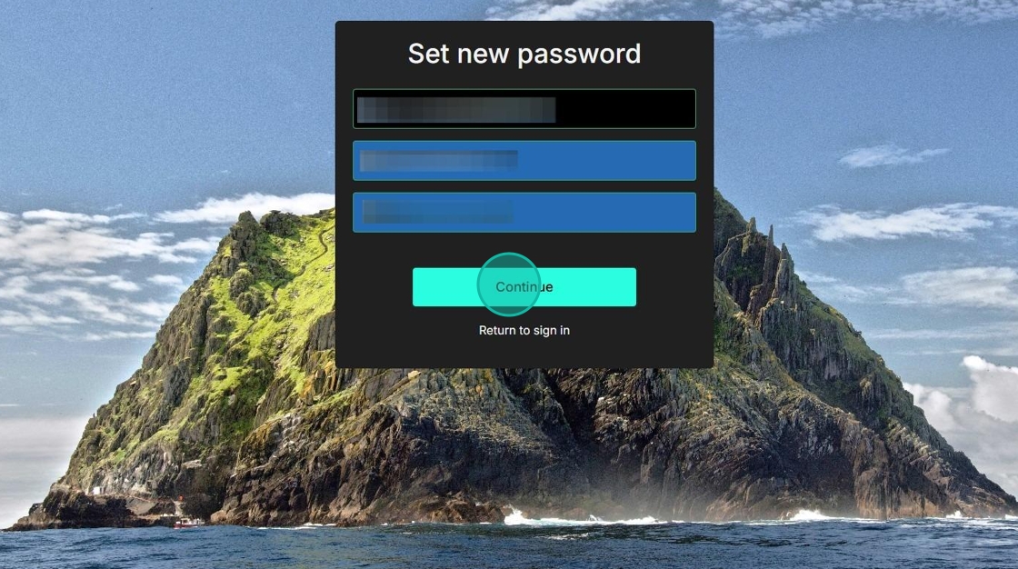 10. Now you can sign in with the new password! Click "Continue" at the bottom once you've filled in your new login.