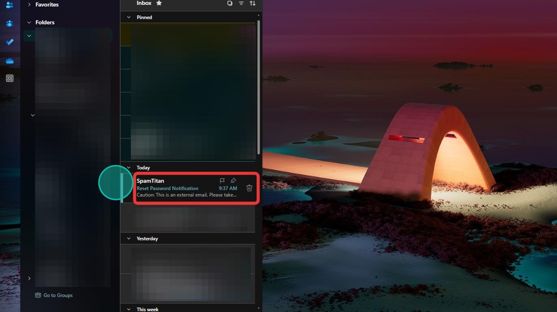 5. In your work email, you will see a new email appear from SpamTitan, with the Subject "Reset Password Notification". Click on this email.